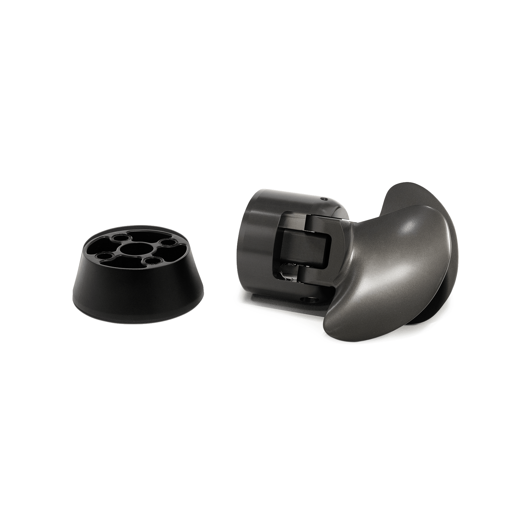 Our innovative folding propeller for the eFoil. The folding propeller’s two blades are designed to rapidly fold back when you release the throttle on the hand controller, reducing drag through the water. This added efficiency allows the rider to substantially preserve battery life while using the power of the surf to glide and fly.